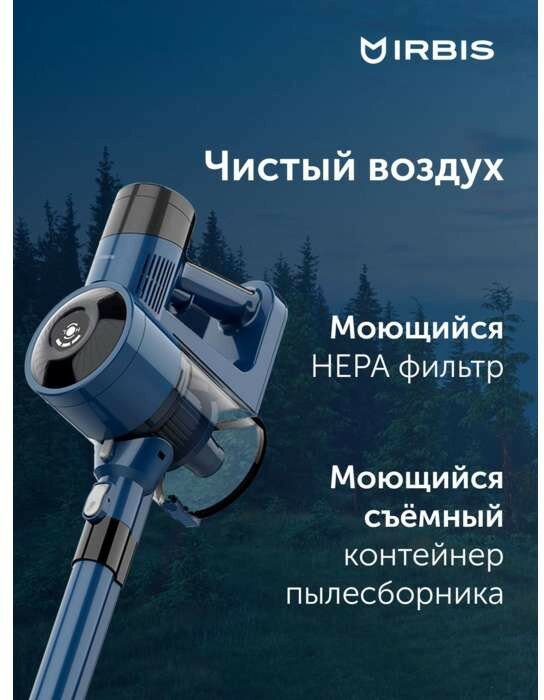 Вертикальный пылесос для дома IRBIS IVH0222 Hurricane безмешковый ручной пылесос для дома с контейнером, турбо, 2 насадки