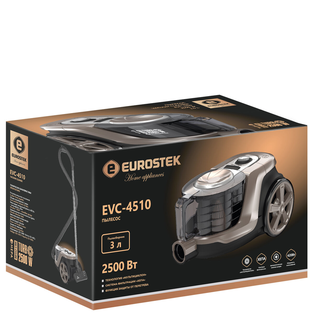 Пылесос Eurostek EVC-4510 (Циклон, 2500/420 Вт, Бежевый)