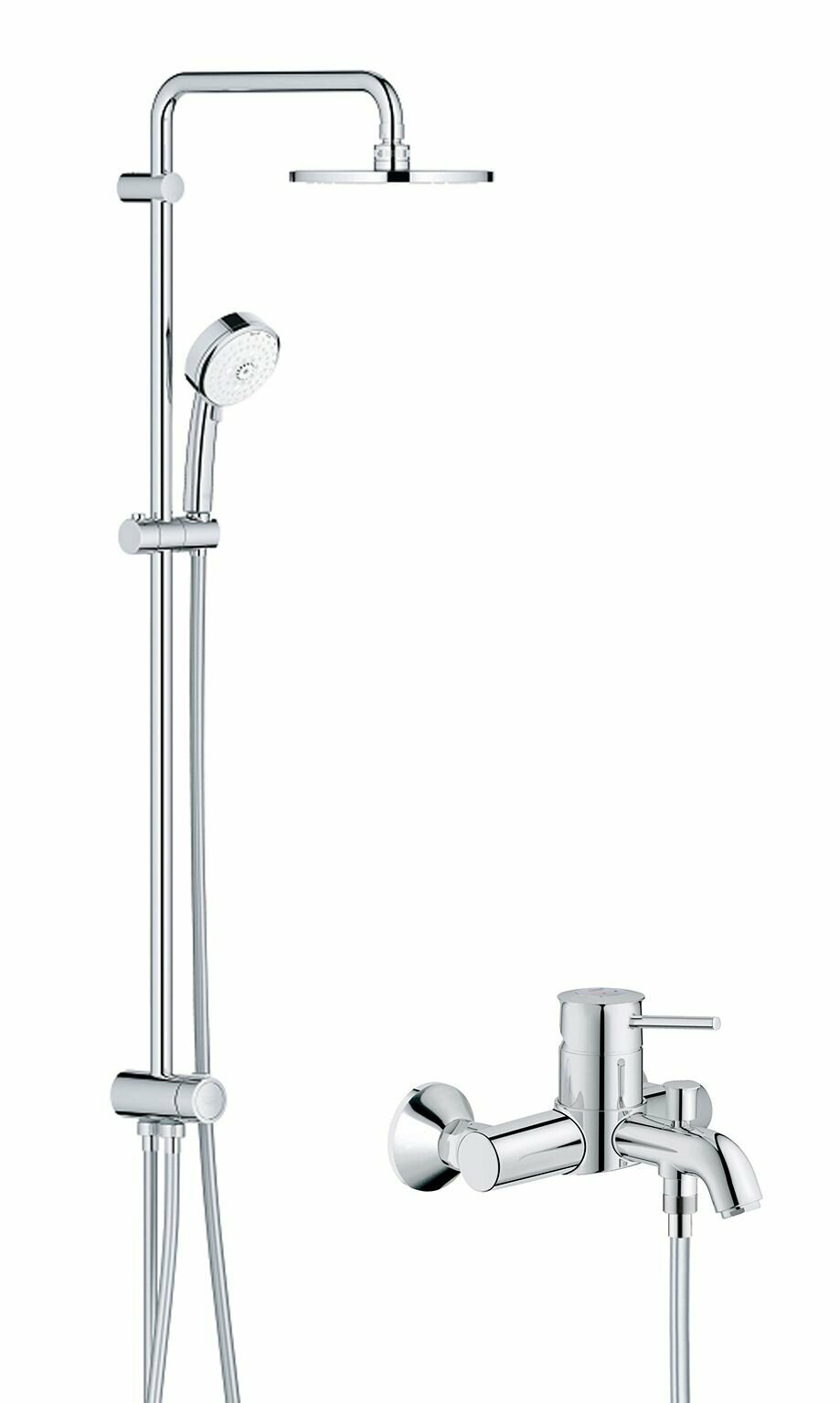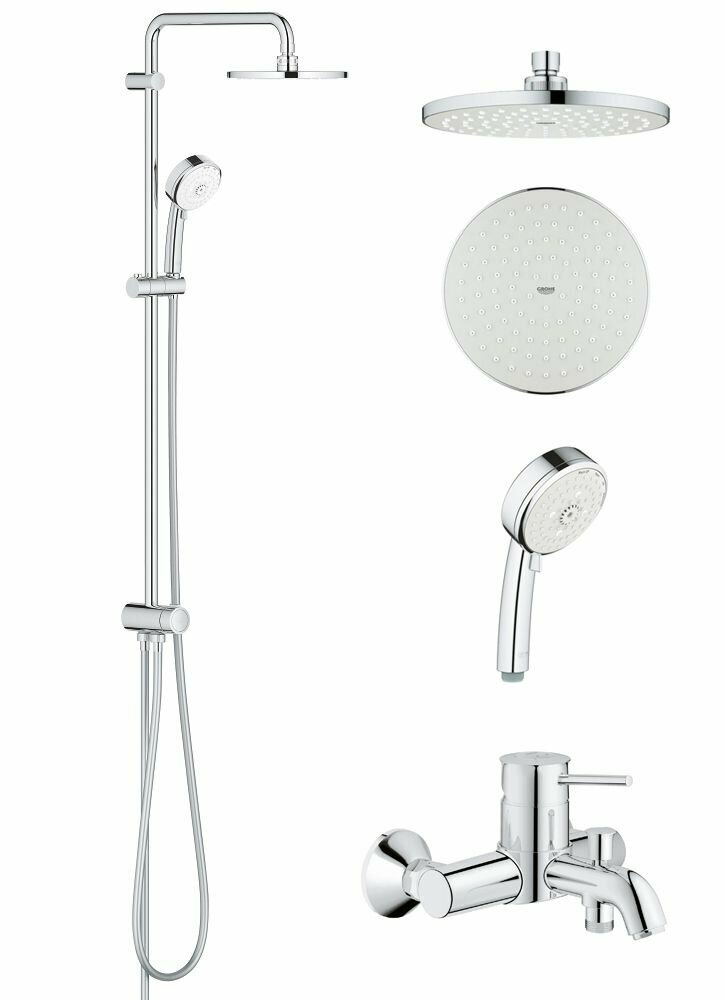 Душевая стойка с верхним душем и смесителем для ванны Grohe Bau Classic 90, хром интересное: