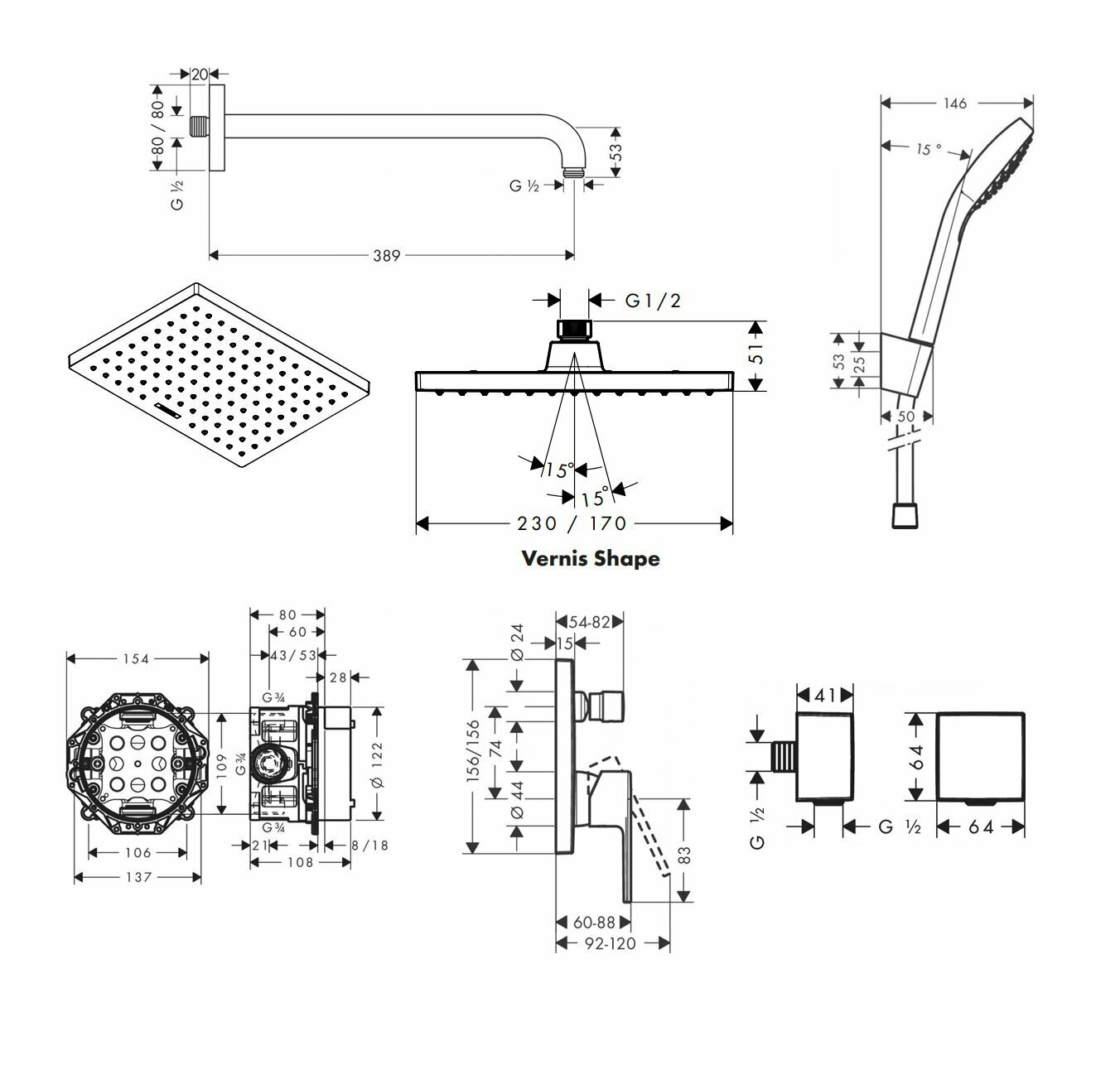 Душевая система с тропическим душем Hansgrohe Vernis Shape 230, хром интересное: