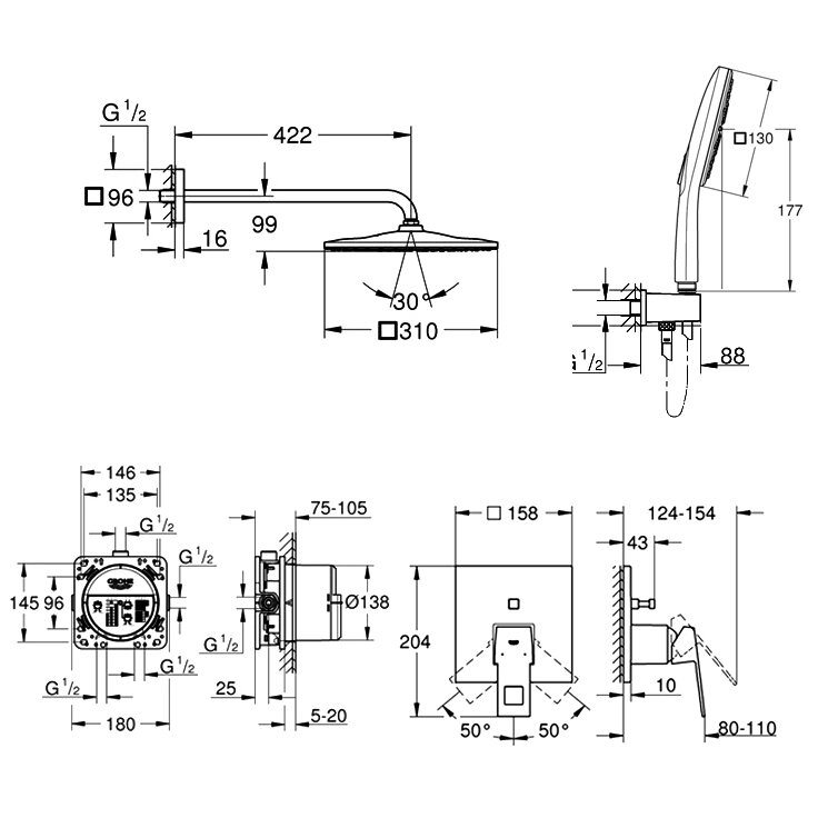 Душевая система с тропическим душем Grohe Eurocube SmartActive 300 интересное: