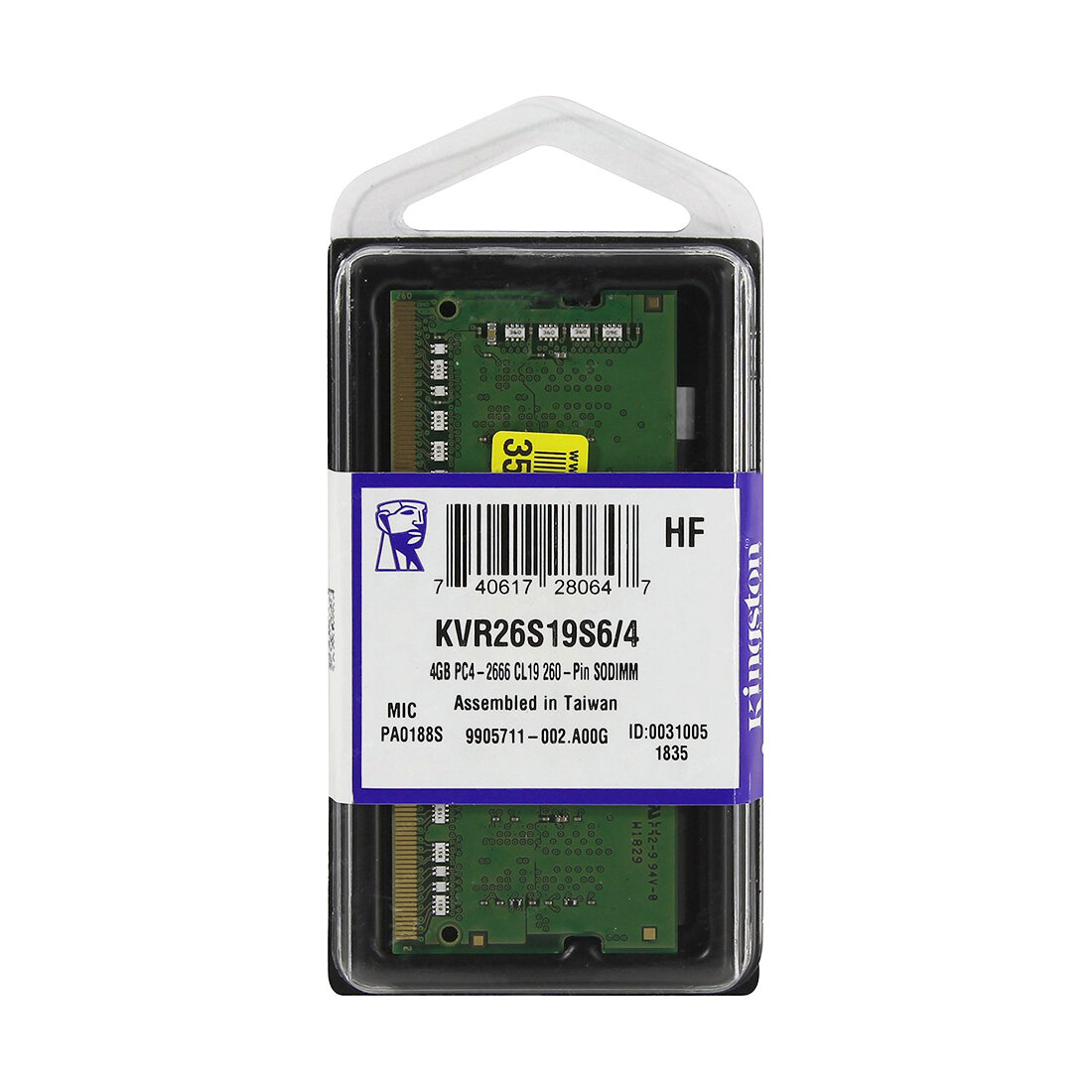 Модуль памяти Kingston VALUERAM KVR26S19S6/4 DDR4 - 4ГБ 2666, SO-DIMM, Ret