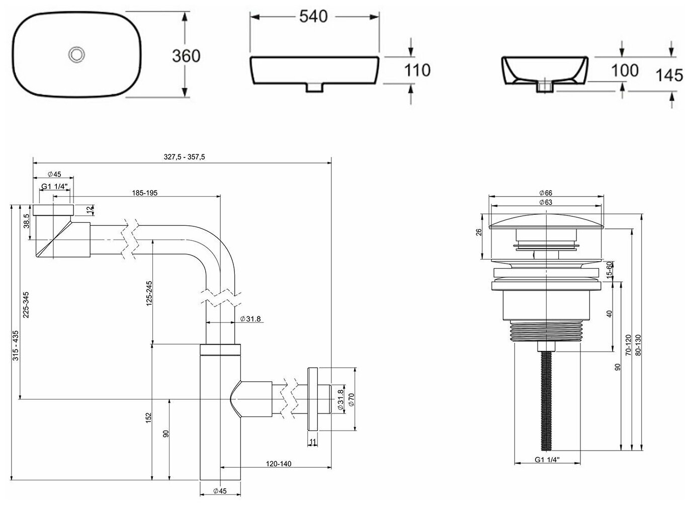 Накладная раковина в ванную Lavinia Boho Bathroom Sink 21520048 в комплекте 3 в 1: умывальник белый, донный клапан и сифон в цвете матовый черный