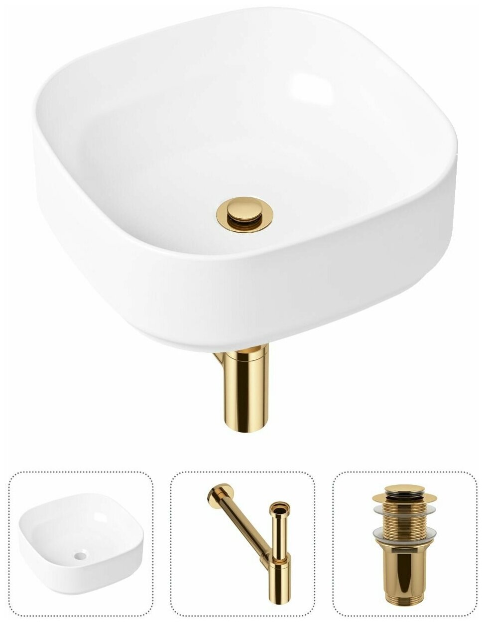 Купить Накладная раковина в ванную Lavinia Boho Bathroom Sink Slim 21520225 в комплекте 3 в 1: умывальник белый, донный клапан и сифон в цвете золото