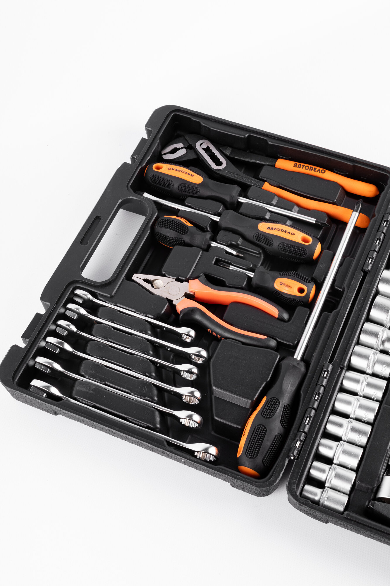 | Инструменты в комплекте | молоток / отвёртки / рукоять для бит / трещотка / пассатижи / ключи гаечные / ключ переставной гаечный / ключи имбусовые (шестигранные) |