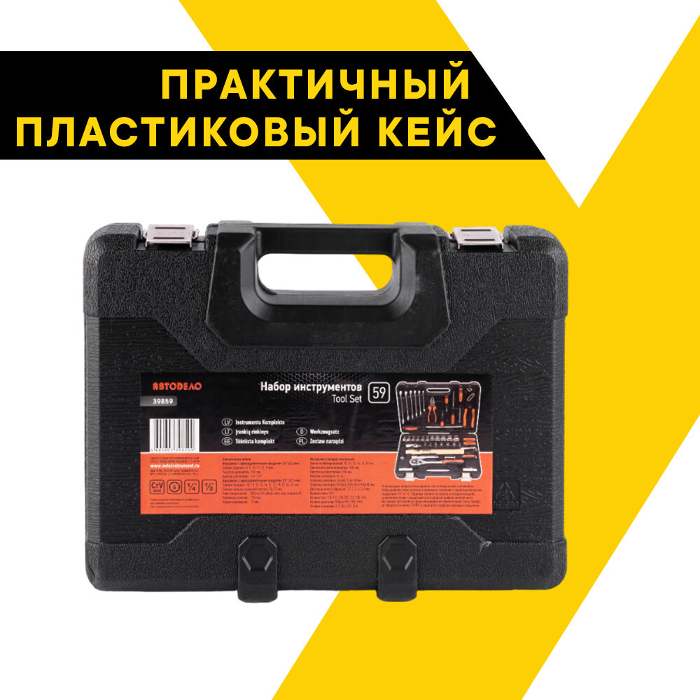 Набор инструментов Автодело, под размеры 1/2" и 1/4", комплект 59 предметов, арт. 39859