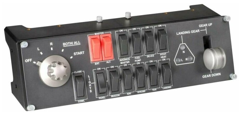 Игровой контроллер Logitech G Saitek Pro Flight Switch Panel блок переключателей для полетных симуляторов, черный, 13 клавиш, 1 тумблер, 1 рычаг, индикация, USB 2.0 кабель 1,8м