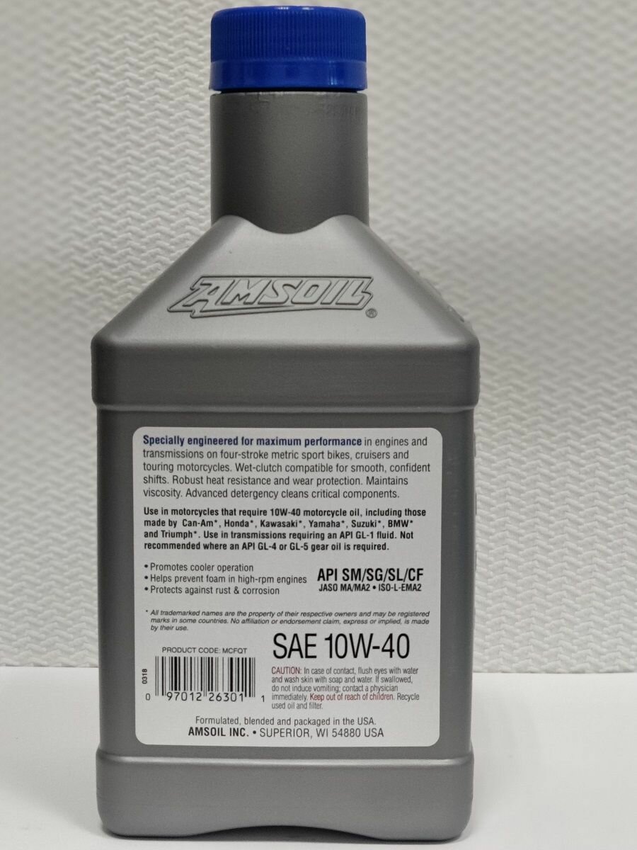 СохранитьМотоциклетное масло Amsoil Synthetic Metric Motorcycle Oil SAE 10W-40 (0,946л) Mcfqt . интересное: