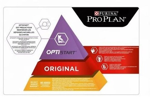 | Дополнительная информация | переводите котенка на корм Pro Plan® JUNIOR в возрасте 3-4 недели; для более легкого поедания корм следует смешивать с водой; постепенно уменьшайте количество добавляемой для размачивания воды до того момента, когда котенок сможет есть не размоченный корм; придерживайтесь 2-3 разового кормления или давайте корм по необходимости; для беременных кошек минимальная суточная норма 90 г/день, для кормящих – минимальная суточная норма 180 г/ день или по необходимости |