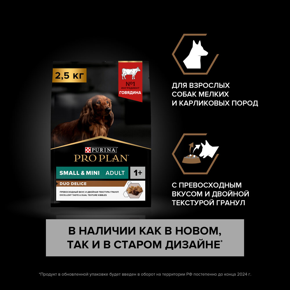 Корм Purina Pro Plan для взрослых собак мелких пород, с говядиной и рисом, DUO DELICE, 2,5 кг