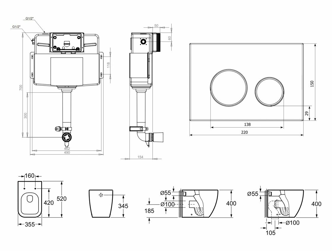 Подвесной унитаз комплект 6 в 1 Lavinia Boho Biore Compacto Rimless 75110150: унитаз, сиденье микролифт, инсталляция, кнопка, шумоизоляция