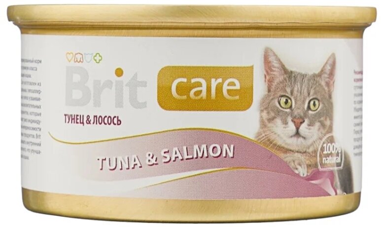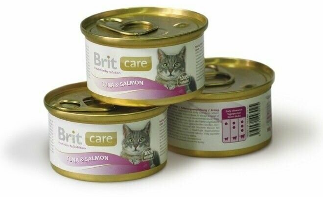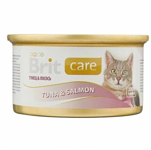 Консервы Brit Care Tuna & Salmon для взрослых кошек с лососем и тунцом,упаковка 12*80г