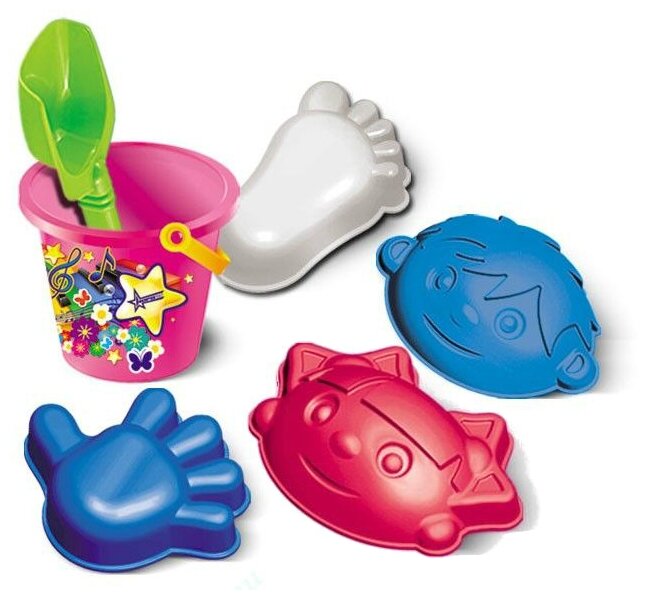 Купить Набор для песка №72 (девочка, мальчик, ручка, ножка, ведро большое непрозрачное с печатью, совок большой ) 14х22х17 см. Н-172-no