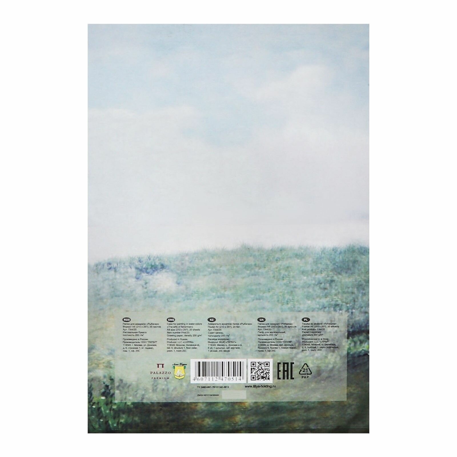 Папка для акварели Лилия Холдинг А4, 20 л., 200 г/м2, бумага гознак, среднее зерно, "Рыбачка", ПА4/20