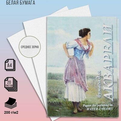 Папка для акварели А4, 20 л., 200 г/м2, бумага гознак, среднее зерно, "Рыбачка", ПА4/20 интересное: