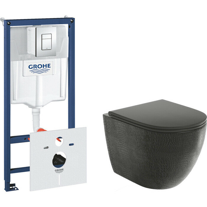 Комплект 3 в 1 инсталляция Grohe Rapid SL + Унитаз подвесной Grossman GR-4455S + кнопка черная