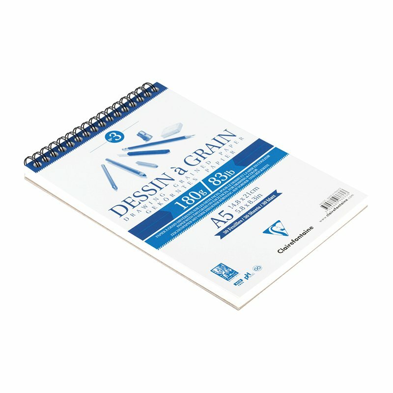 Бумага для графики Clairefontaine Скетчбук-альбом "Dessin a Grain" А5 180г/м2, 30л., мелкозерн., Clairefontaine, спираль