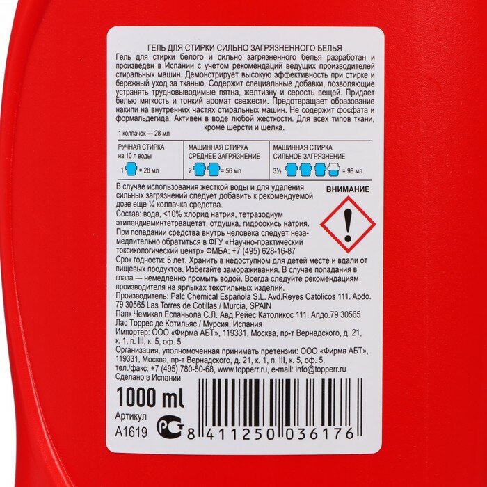Topperr Гель-концентрат для стирки сильно загрязненного белья, 1000 мл, 1 шт., А1619 интересное: