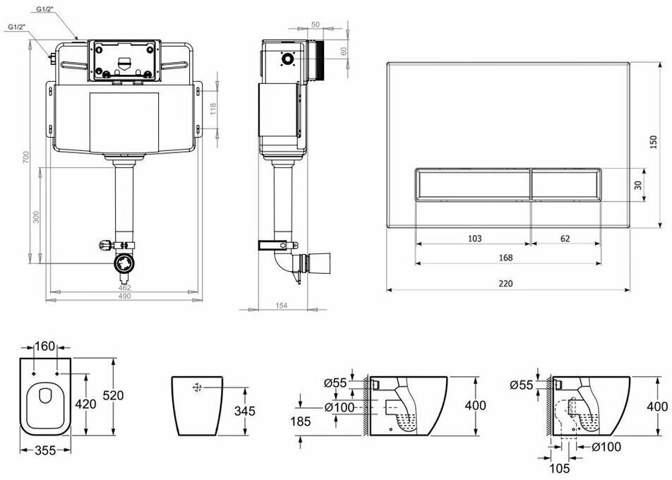 | Комплектация | бачок / звукоизоляционный комплект / монтажный набор креплений / панель смыва / сиденье |