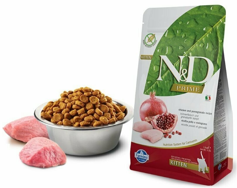 Farmina N&D Prime Cat Chicken & Pomegranate Kitten сухой беззерновой корм для котят, беременных и кормящих кошек с курицей и гранатом - 1,5 кг