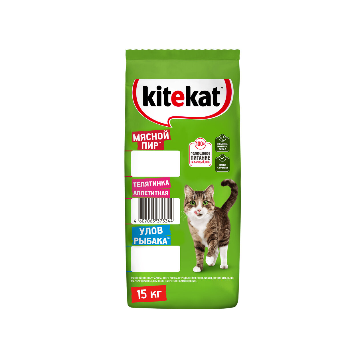 Сухой корм KITEKAT для взрослых кошек Телятинка Аппетитная, 15кг