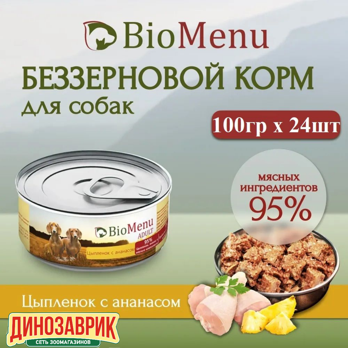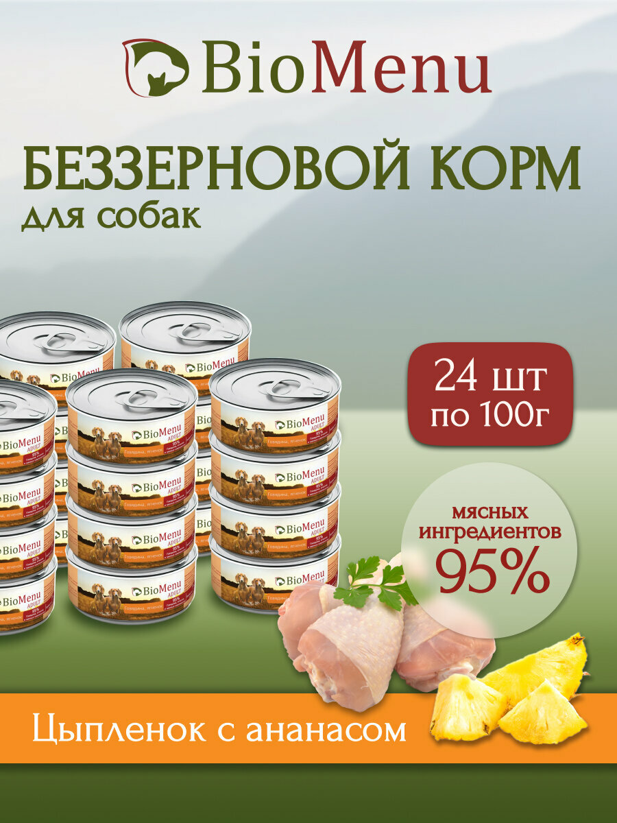 Biomenu Adult Консервы для Собак Цыпленок с Ананасами 95%-Мясо 24х100г