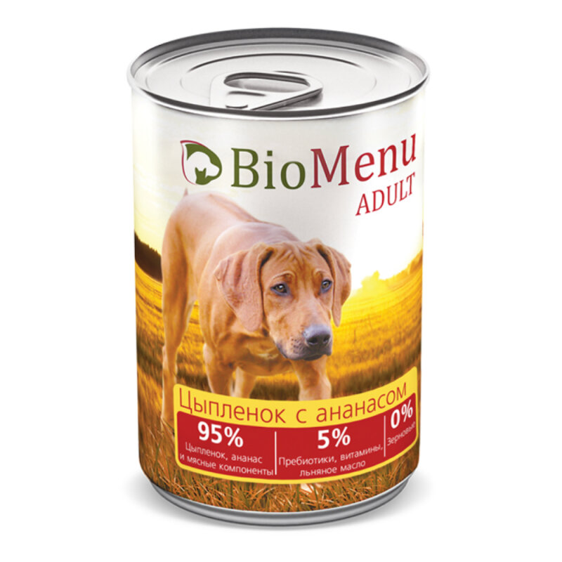 Консервы для собак BioMenu Adult с цыплёнком и ананасами 410 г.