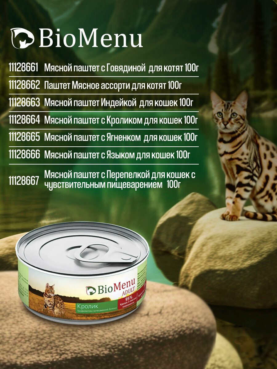 BioMenu Консервированный корм для кошек, Паштет с Кроликом, 100 гр