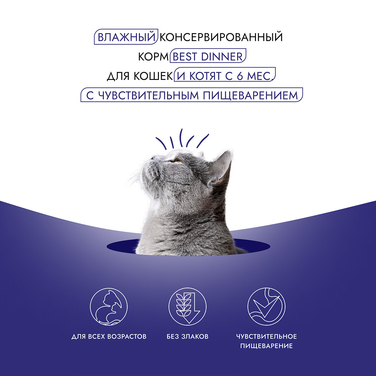 Консервы Best Dinner High Premium для любых кошек. Натуральная индейка (12шт*100гр)