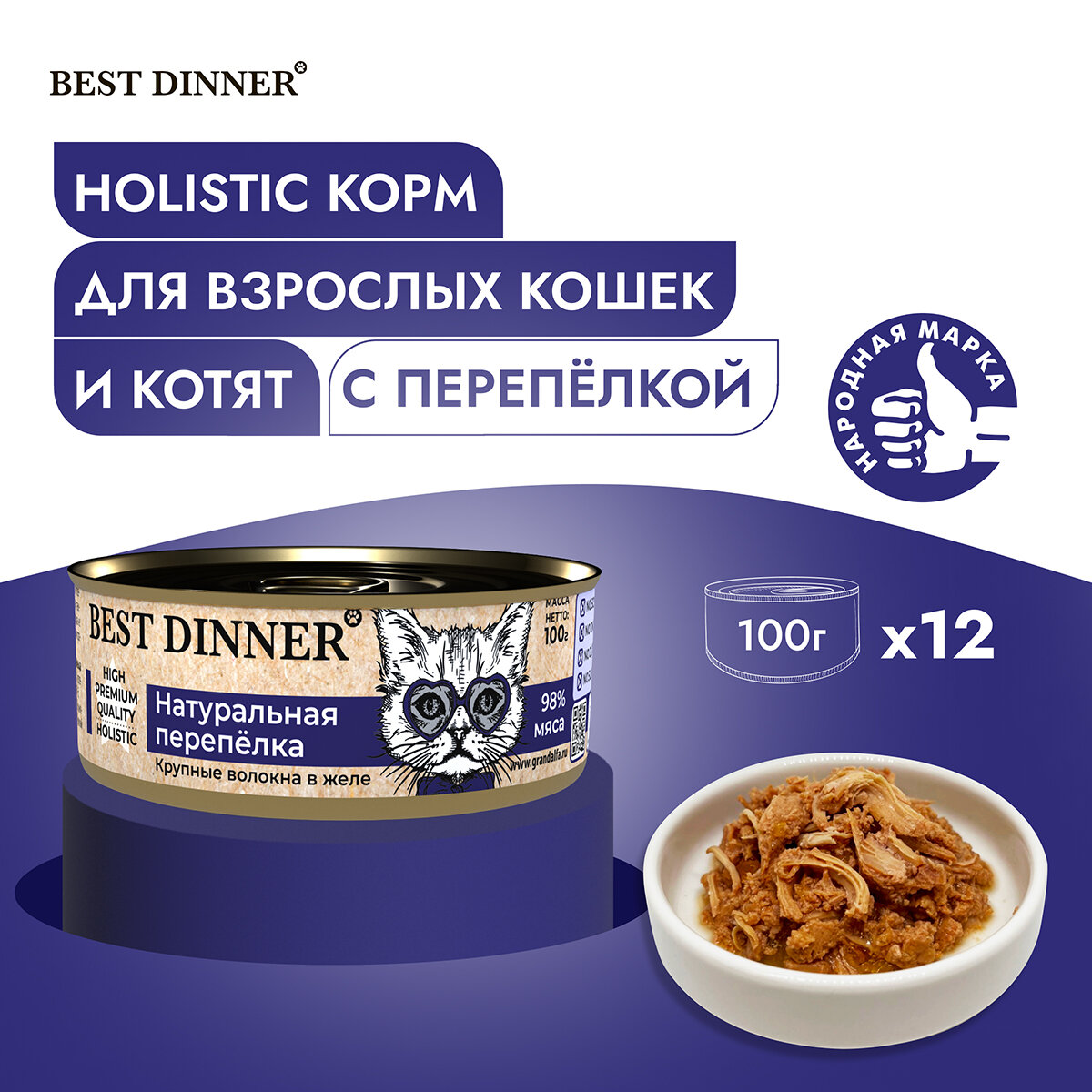 Влажный корм Best Dinner Holistic для котят и кошек любых пород с перепелкой (12шт х 100гр)