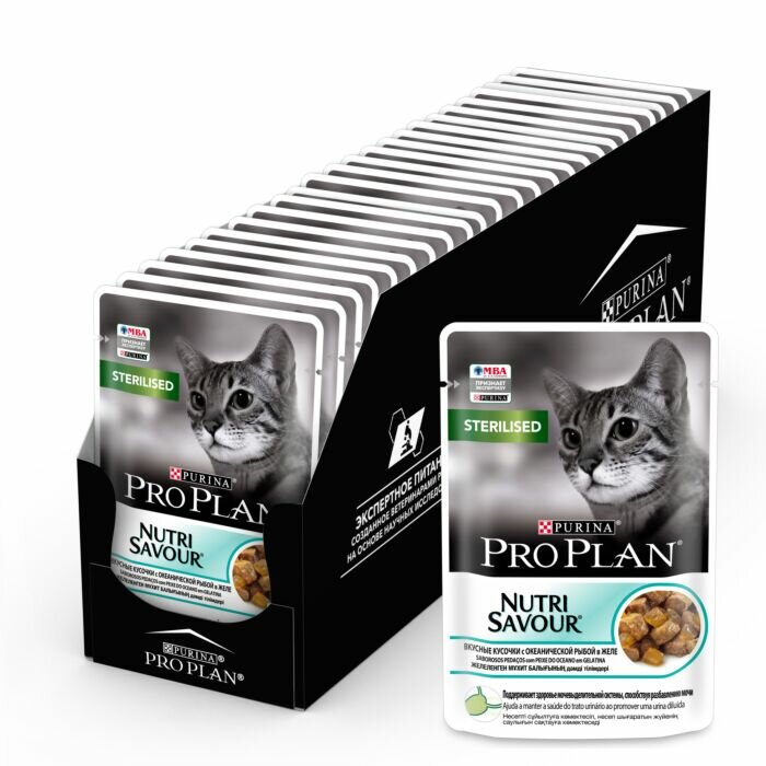 Pro Plan Nutrisavour Sterilised пауч для стерилизованных кошек и котов (кусочки в желе) Океаническая рыба, 85 г. упаковка 26 шт