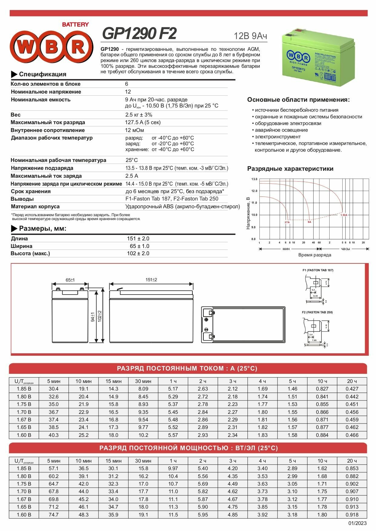 Аккумуляторная батарея WBR GP1290 F2 интересное: