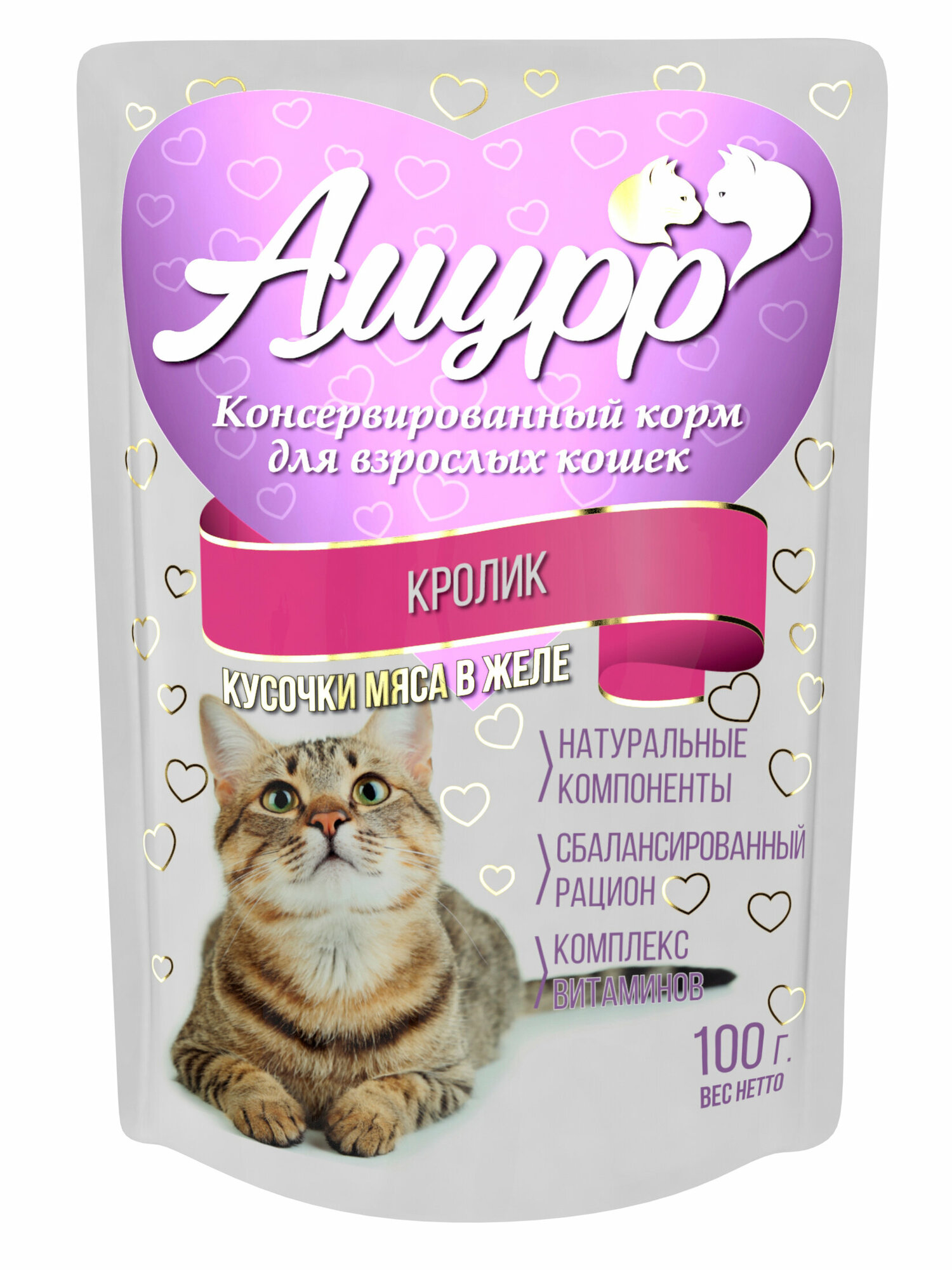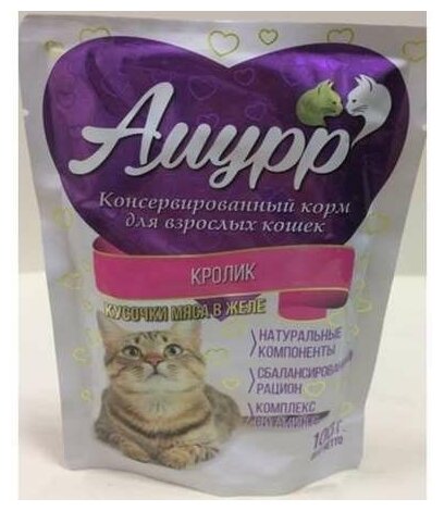 Корм для кошек Амурр консервы кусочки мяса в желе со вкусом Кролика пауч 24х100гр