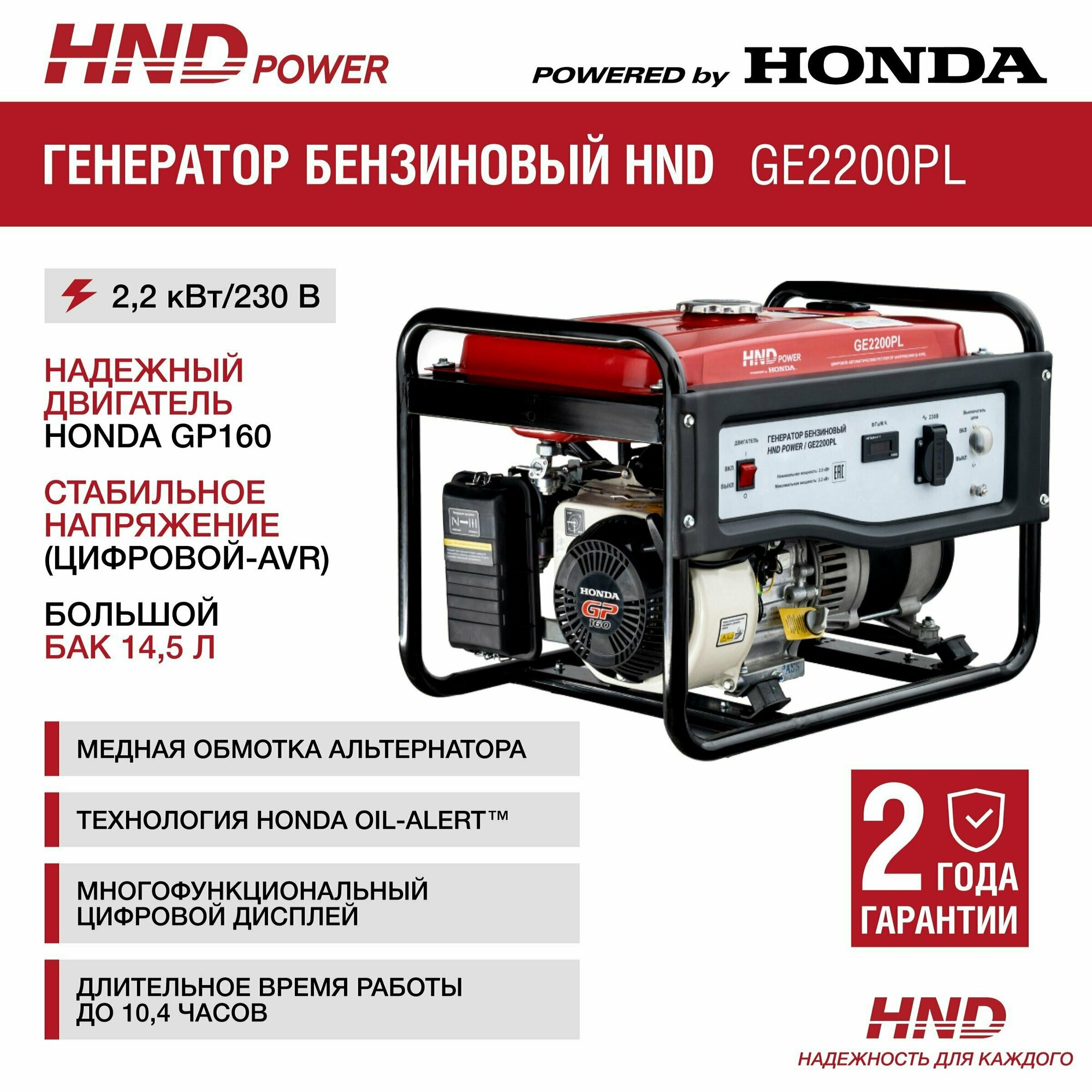 Генератор бензиновый HND GE2200PL с двигателем Honda интересное: