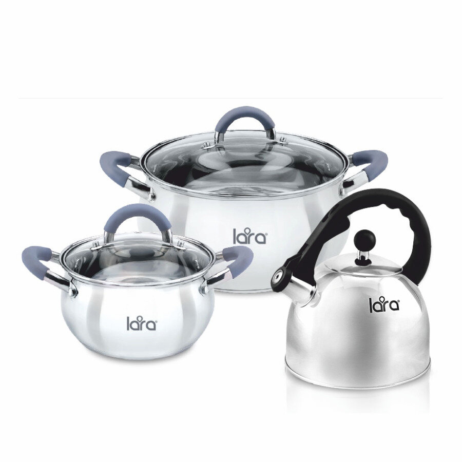 Набор посуды с чайником LARA LR02-103 Bell, из нержавеющей стали, для всех типов плит