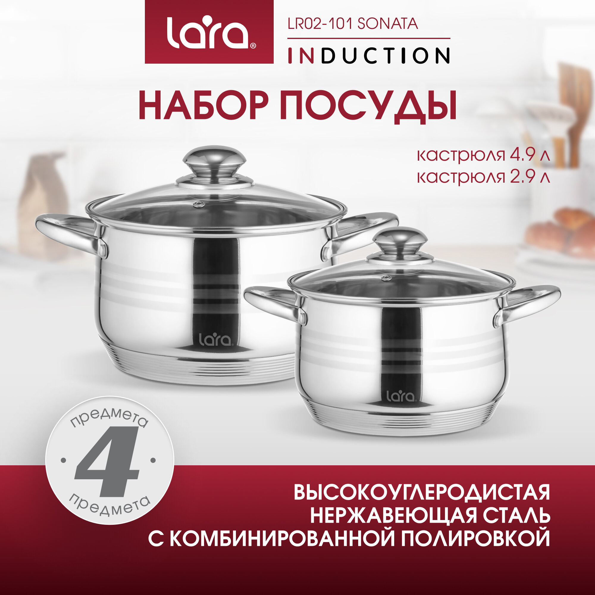 Набор посуды LARA LR02-101 Sonata, 2,9 л, 4,9 л, нержавеющая сталь, для всех видов плит, 2 предмета