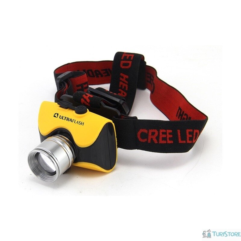 Фонарь Ultraflash E157 налоб аккум 220в желтый cree 3 ватт фокус 3 реж пласт бокс .