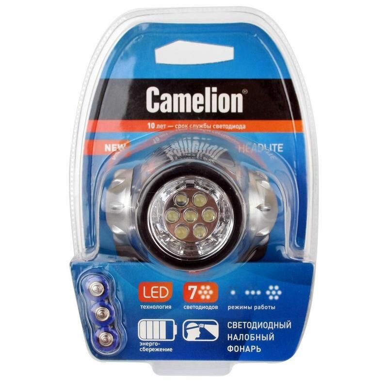 Купить Фонарь Налобный, Металлик, 7Led, 3 Режима, 3Xr03 В Комплект, Пластик, Блистер Led53107f3 Camelion 7534 Camelion арт. 7534
