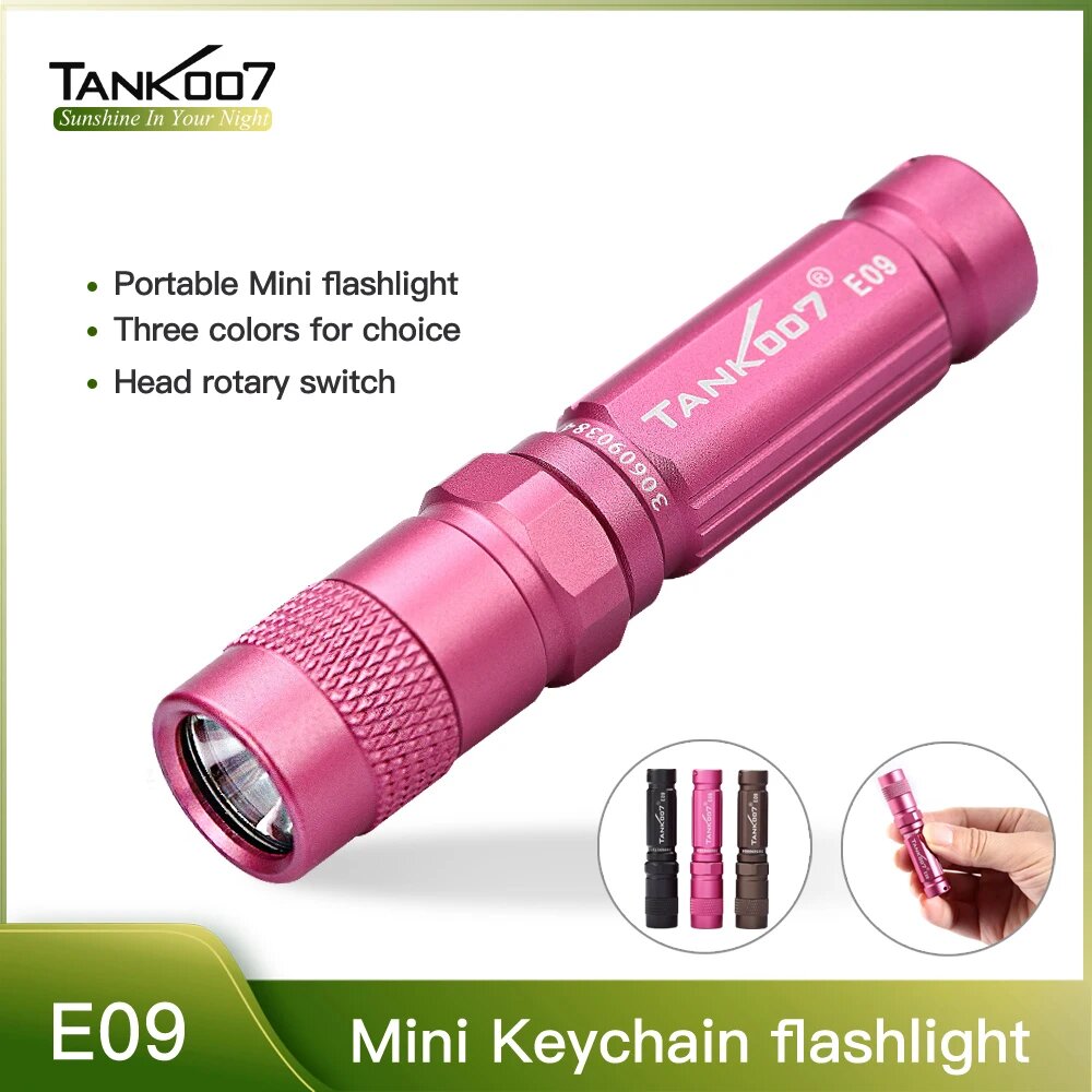 Мини-фонарик TANK007 E09 светодиодный портативный, карманный уличный фонарь для ключей для повседневного использования с питанием от IPX8 и батареей ААА
