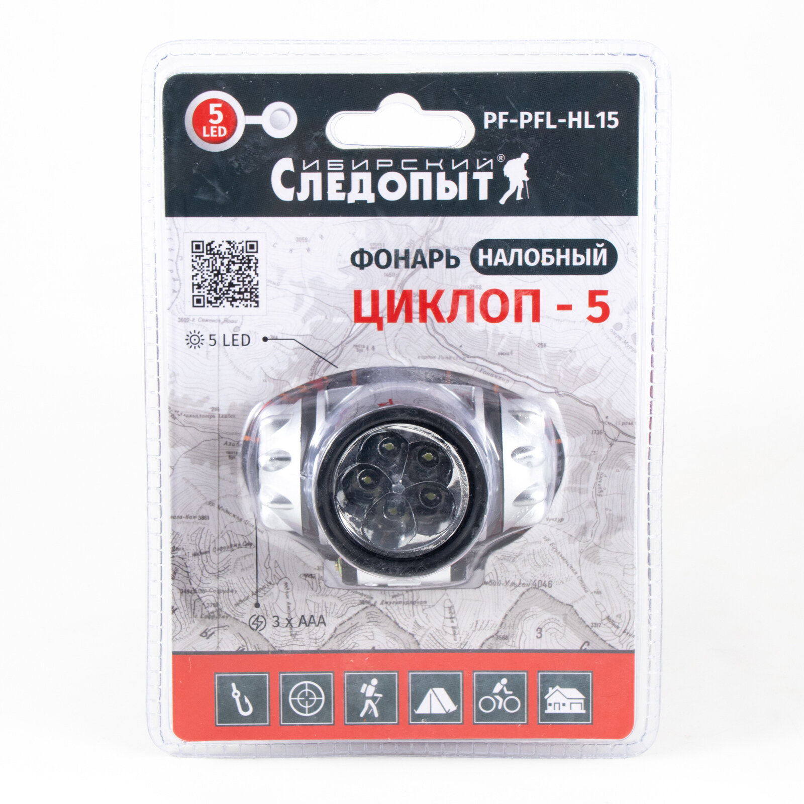 Фонарь налобный "сибирский следопыт-циклоп 5", 5L, 3хААА