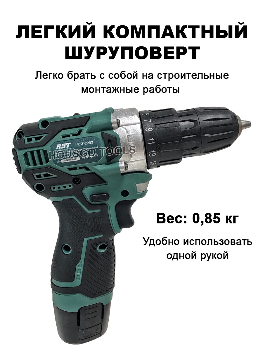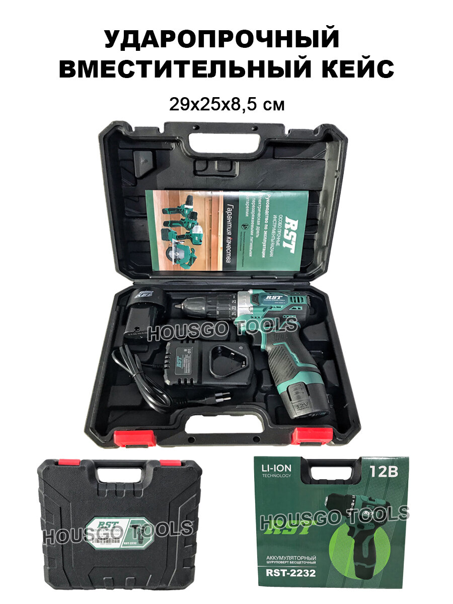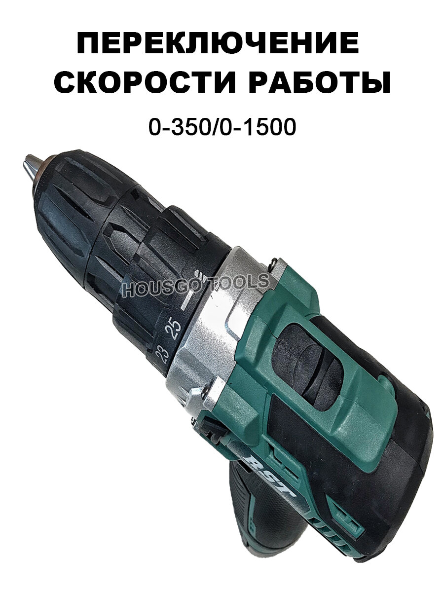 Дрель шуруповерт аккумуляторный бесщеточный 12В в кейс, 1500 об/мин, 2 АКБ Li-ion 2 Ач, 30 Нм, 2 скорости, фонарик, реверс, з/у интересное: