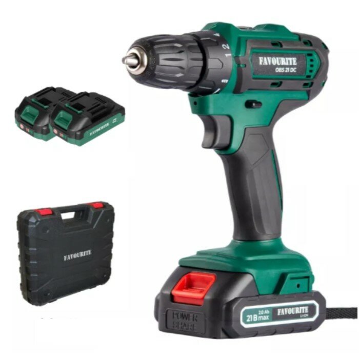Аккумуляторная дрель-шуруповерт FAVORITE OBS21DC SET с кейсом и двумя аккумуляторами 2Ач