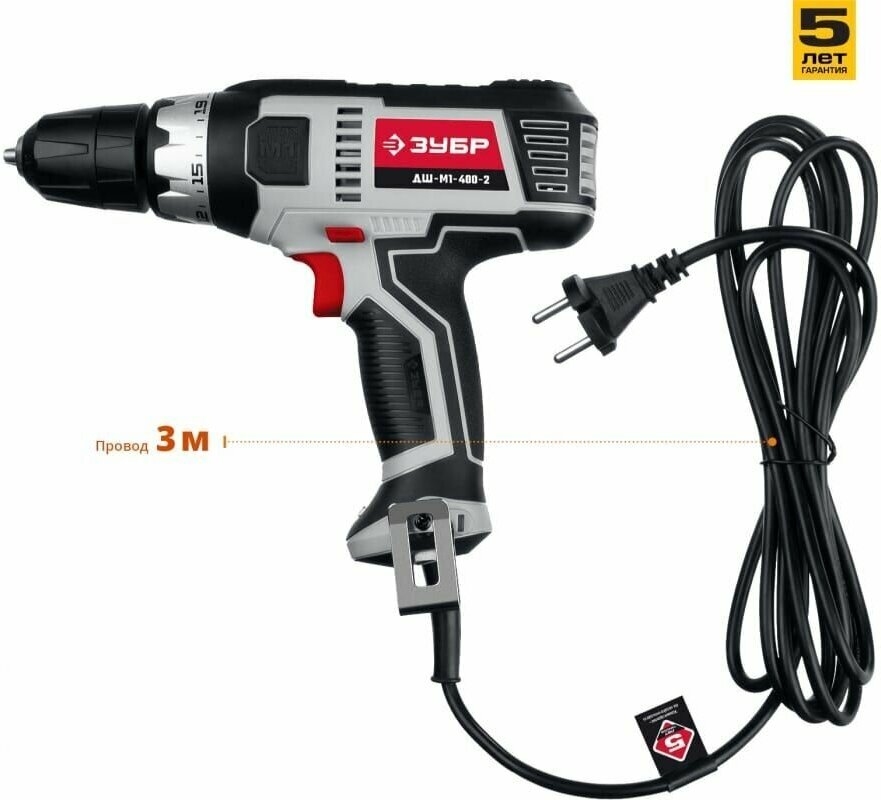 Дрель-шуруповерт ЗУБР ДШ-М1-400-2 сетевая, 0-1800 об/мин, черный/серый интересное: