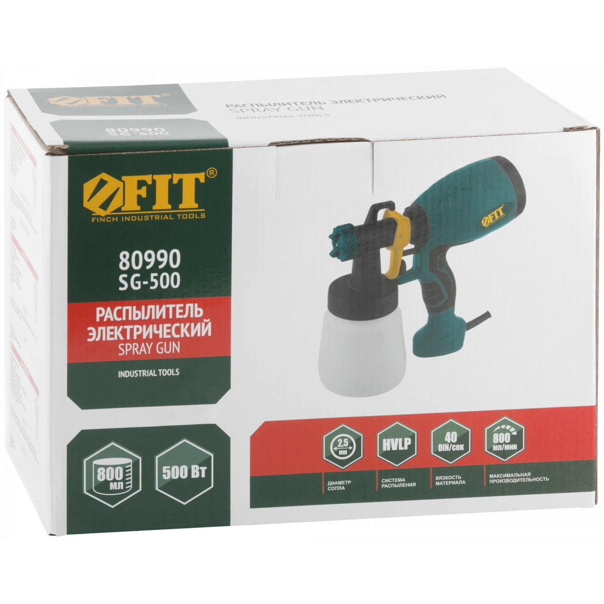 Купить Распылитель электрический 500 Вт; 2,5 мм; 800 мл; 40 DIN/сек; 800 мл/мин; HVLP; коробка, FIT 80990 (1 шт.)
