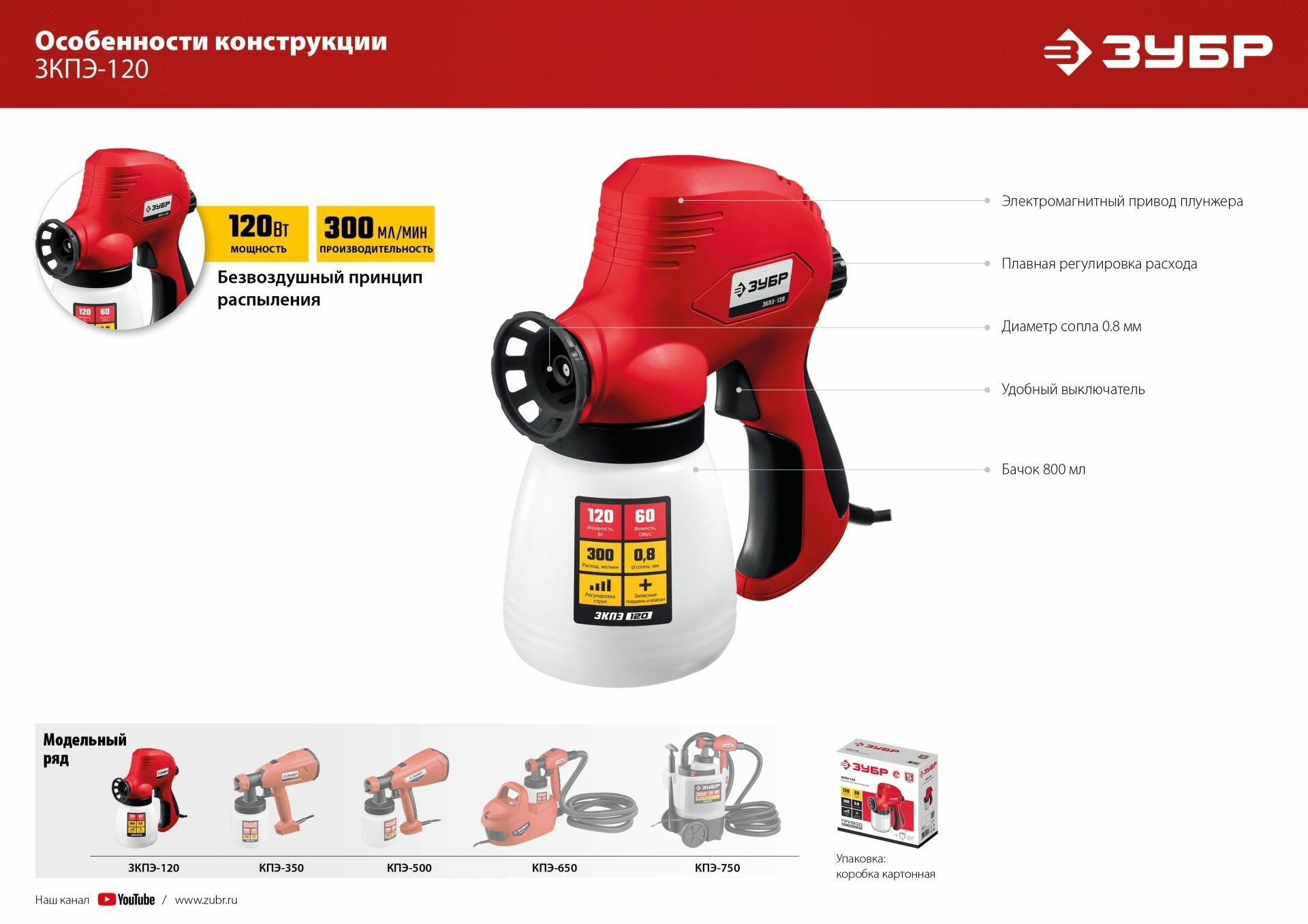 Краскопульт Зубр ЗКПЭ-120, 300 мл/мин, 60 DIN, 0.8л, 120Вт