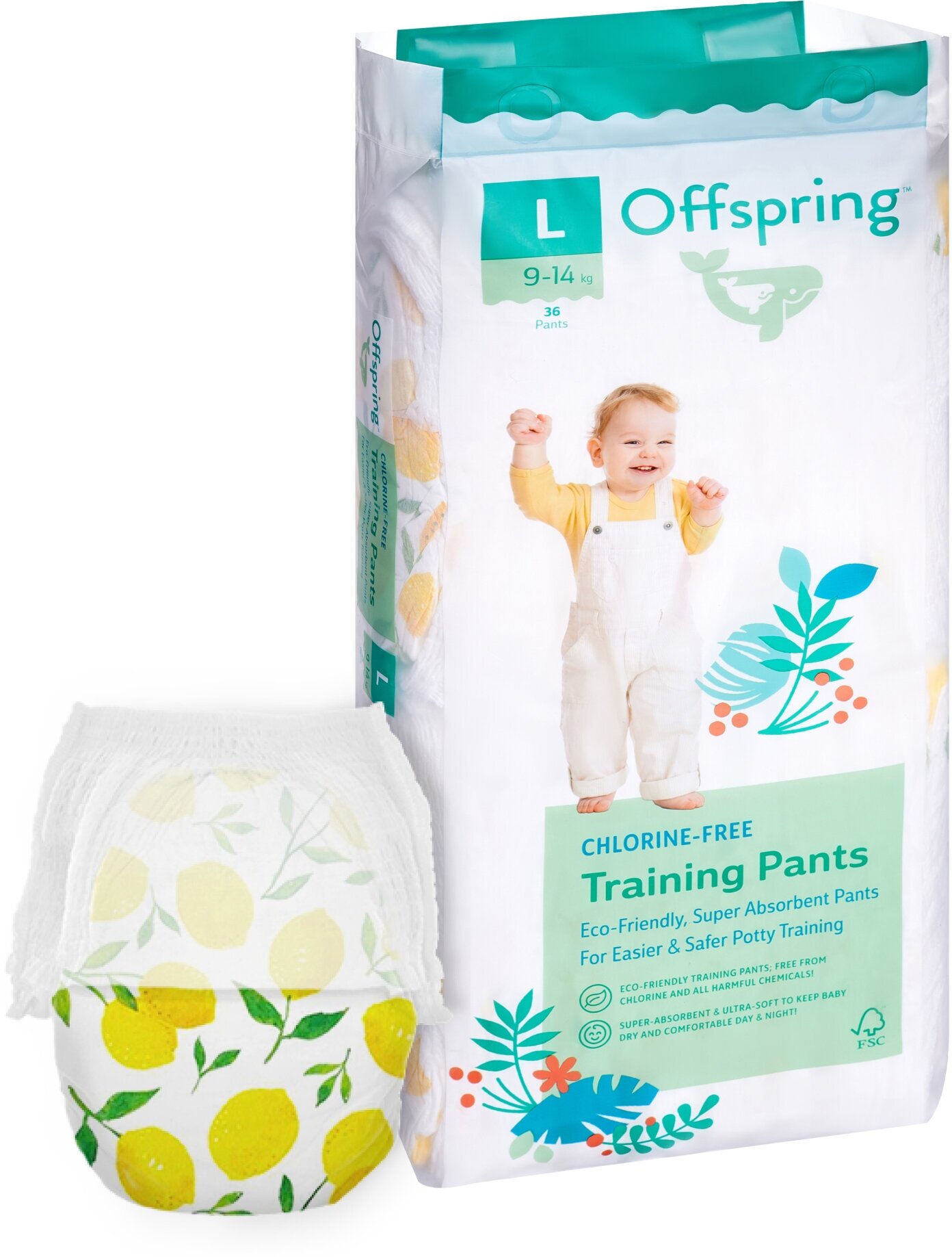 Трусики-подгузники Offspring расцветка Лимоны L (9-14 кг.), 36 шт.