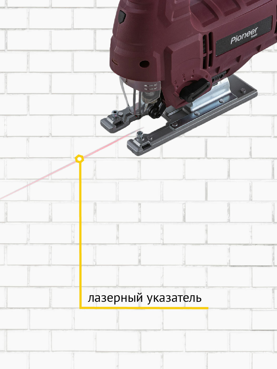 Лобзик электрический Pioneer JS-M900-01PSL с щеточным двигателем и лазерным указателем, возможность подключения пылесоса, 4 режима, 6 скоростей