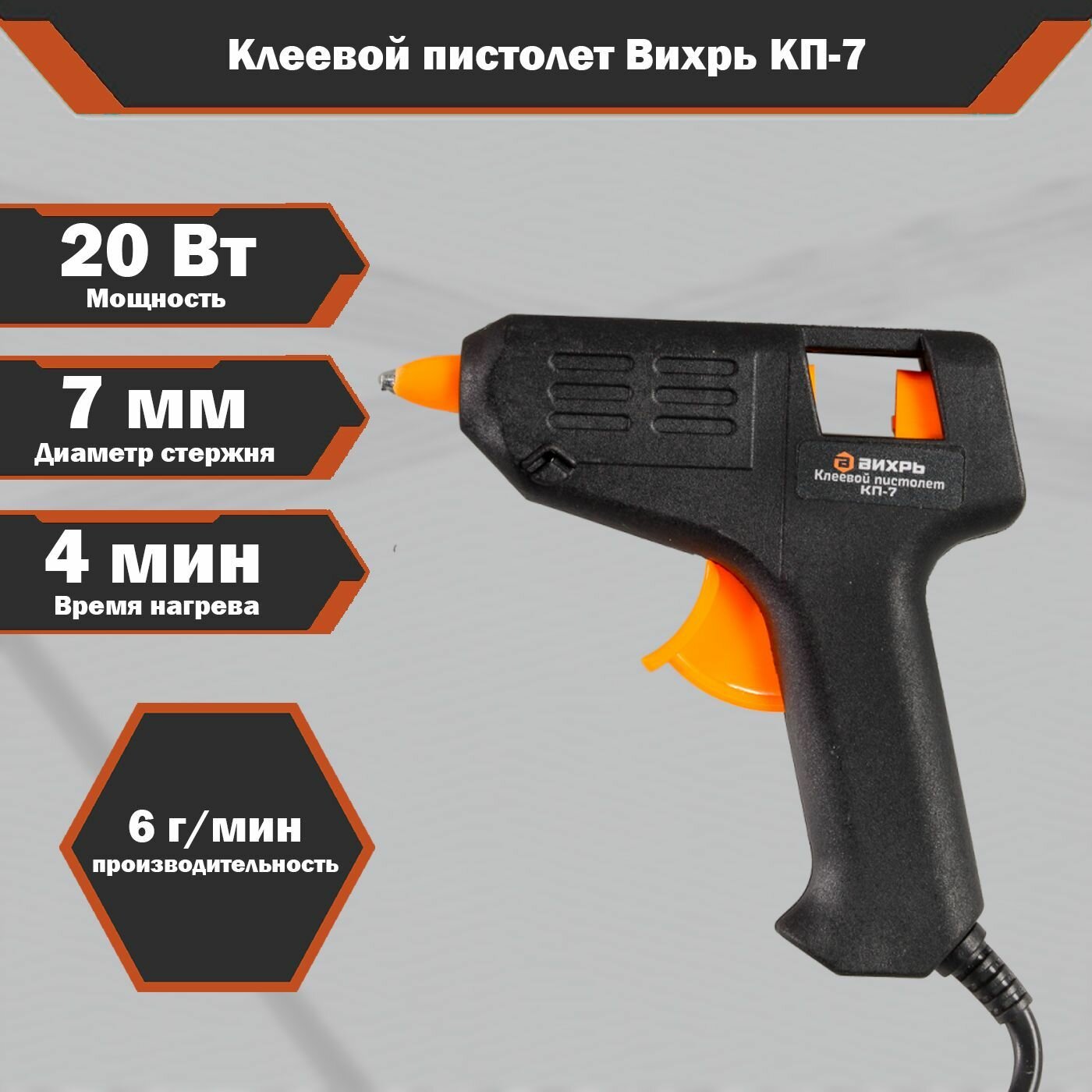 Клеевой пистолет КП-7 Вихрь(стержень 7 мм, 20Вт, защита от капель)