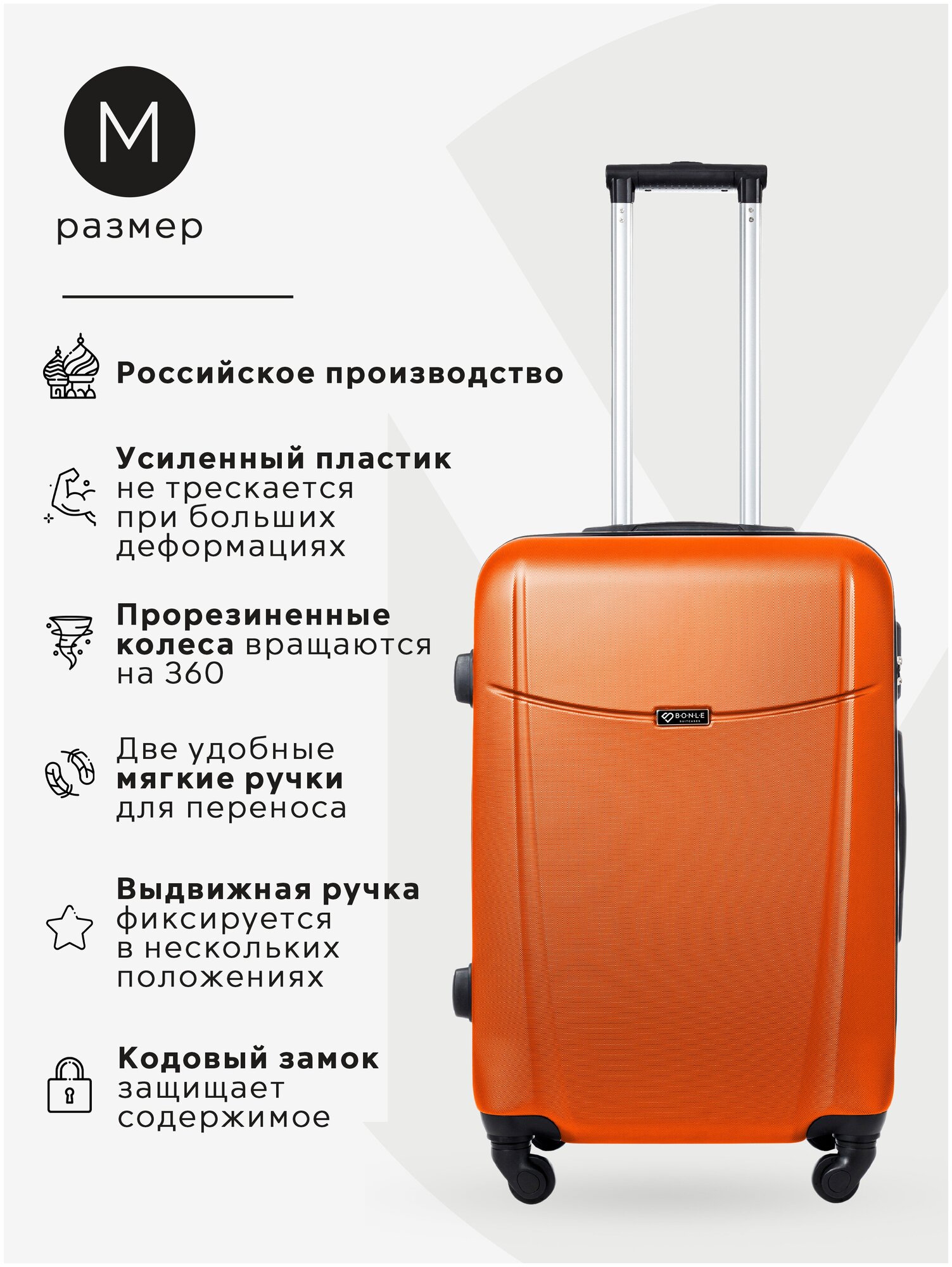 Ниже Вы можете прочитать отзывы на Чемодан Bonle, премиум ABS-пластик, Оранжевый, размер M, 65 см, 62 л, ознакомится с подробными характеристиками, посмотреть интересные обзоры и фотографии на Чемодан Bonle, премиум ABS-пластик, Оранжевый, размер M, 65 см, 62 л.