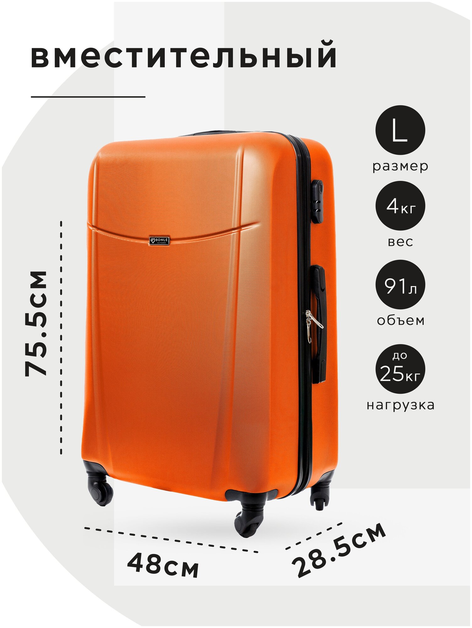 Купить Чемодан Bonle, премиум ABS-пластик, Оранжевый, размер L, 75,5 см, 91 л